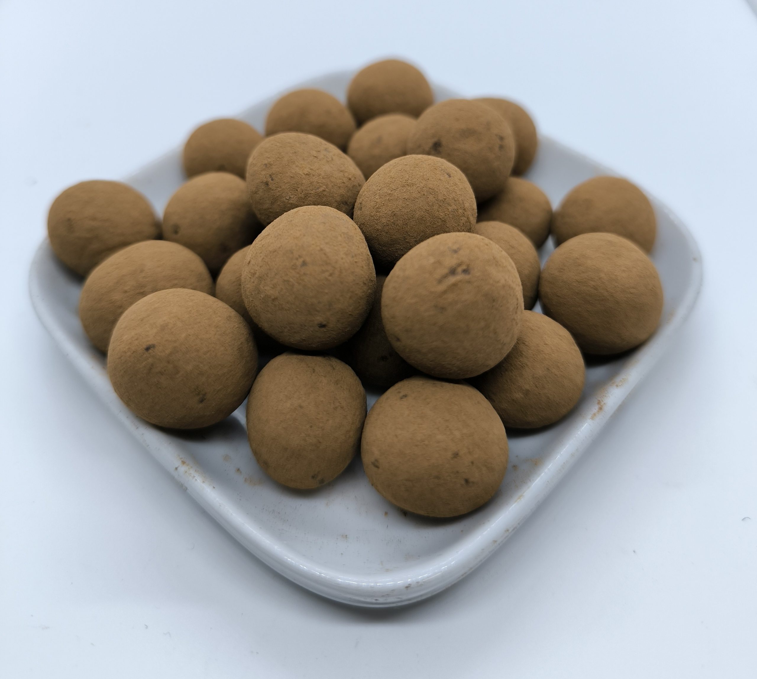 Geröstete Haselnüsse in cremiger Sahne-Kakao-Hülle – harmonisch, knusprig und voll im Geschmack.
