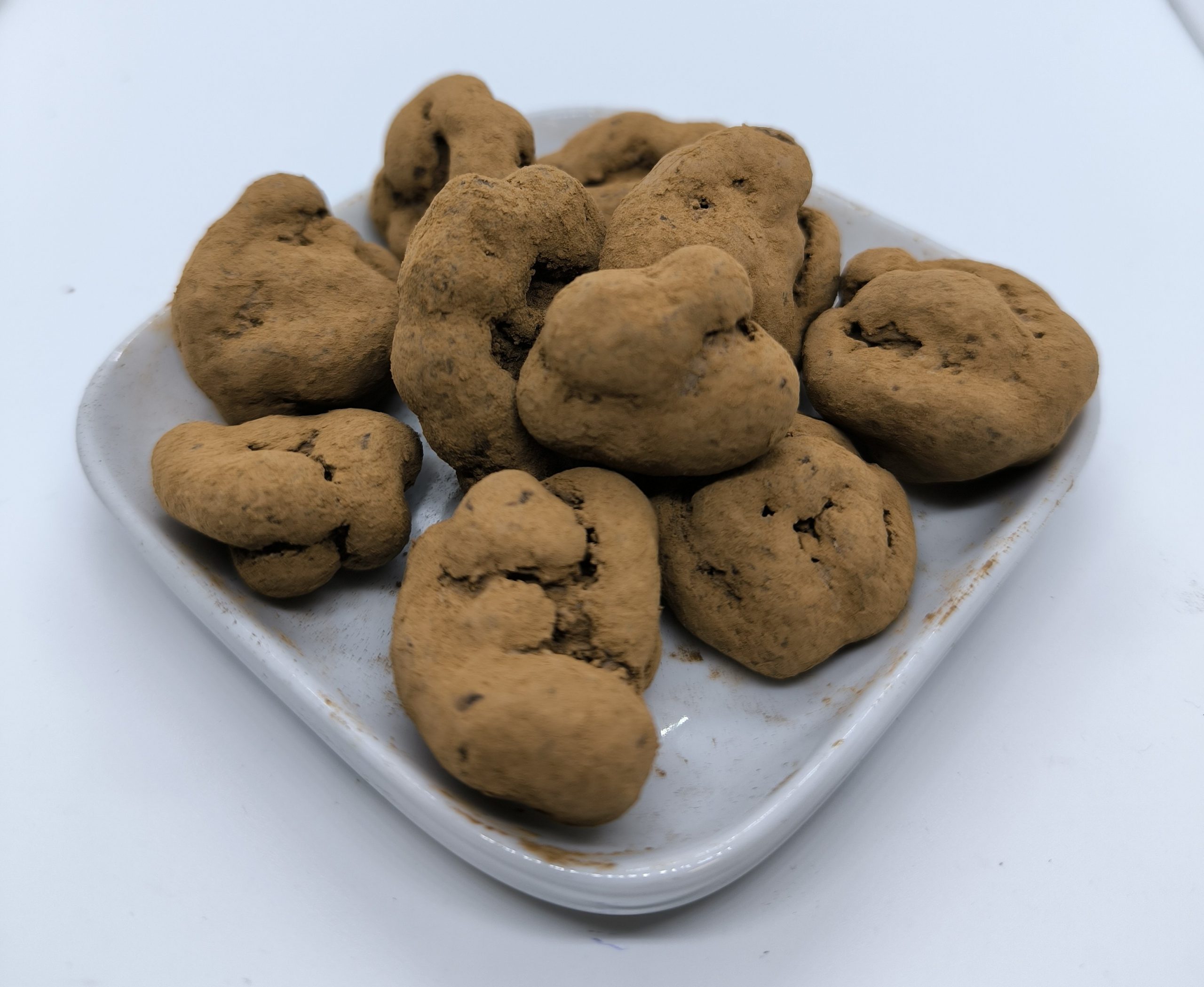 Feine Walnüsse in cremiger Sahne-Kakao-Hülle – sanft, nussig und herrlich vollmundig.
